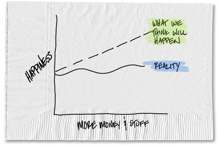What is the one thing that, if you could just get your hands on it, would make you much happier? Go ahead. Get out a piece of paper and write down the first thing that pops into your head. Got it? O.K., now fess up. Who wrote something about a new car? How about a…